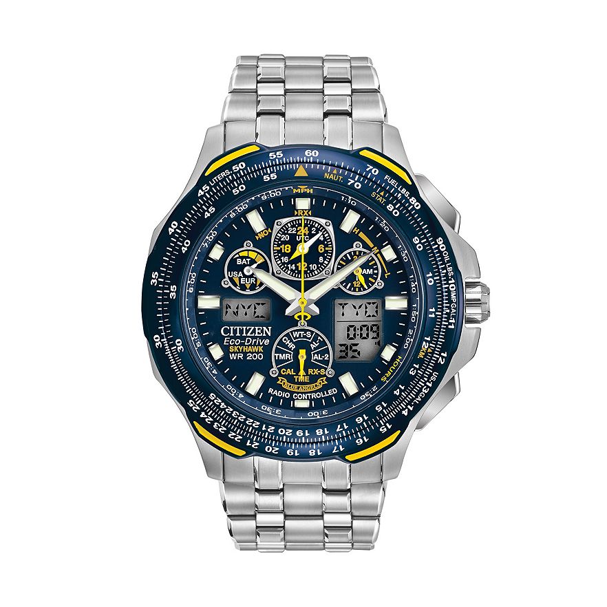 Citizen Eco-Drive takes the world by storm.Featuring atomic timekeeping, World Time and more, this analog and digital watch is the ultimate traveler's timepiece. Don't leave home without this men's silver-tone and blue ion-plated stainless steel watch.