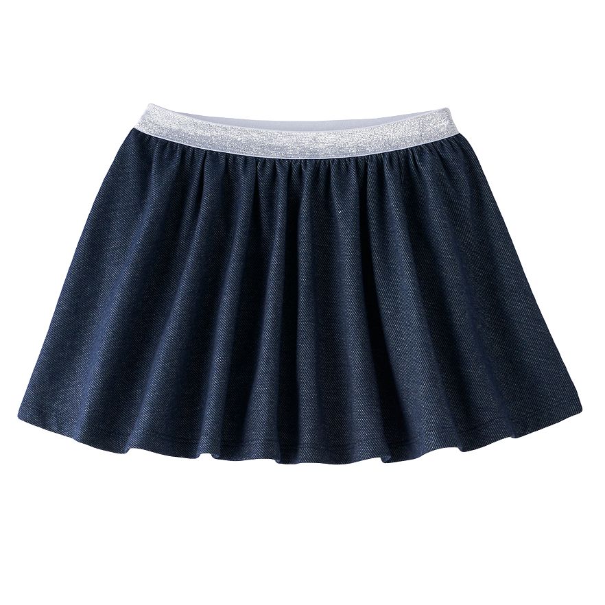 This girls' Jumping Beans faux-denim skort features a glittery waistband for an incredibly cute look. In navy.