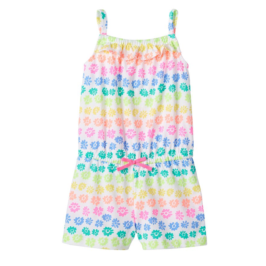 This girls' Jumping Beans romper will soon be a warm weather go-to with its adorable and bright prints that are perfect for the spring and summer.