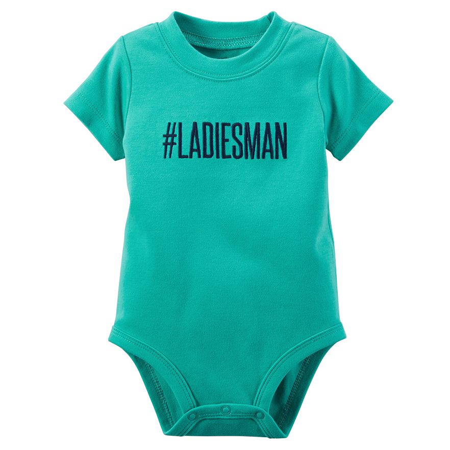 He'll prove he's a true "Ladiesman" wearing this boys' Carter's embroidered graphic bodysuit. In teal.