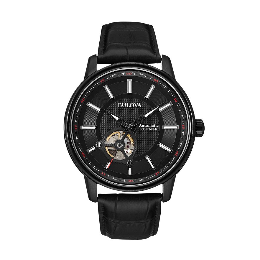 A skeleton window and impressive automatic power make this men's Bulova watch the perfect way to elevate any look.